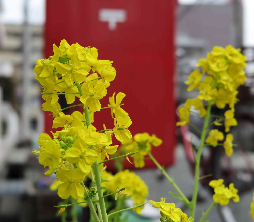 今載せた菜の花はポスト📮の前で