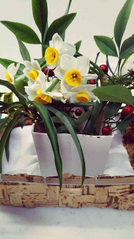 【水仙 南天 実 アイビー】