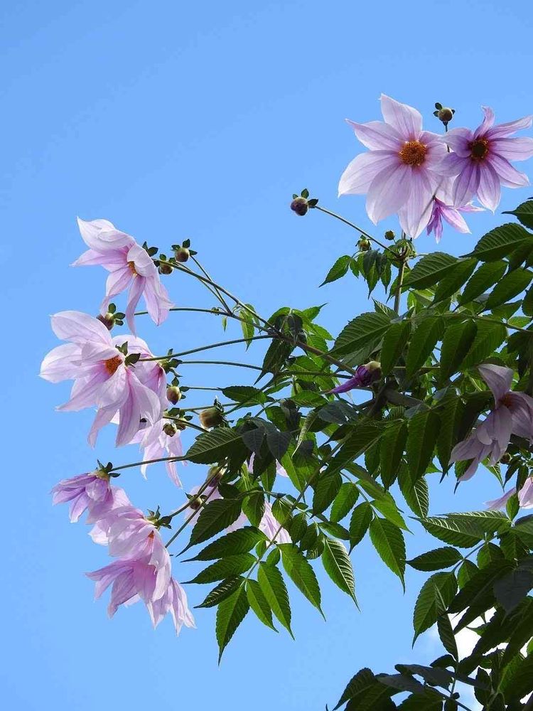 民家の庭先で聳えて青空とコラボして綺麗に咲いていた🌺皇帝ダリアの花🌺