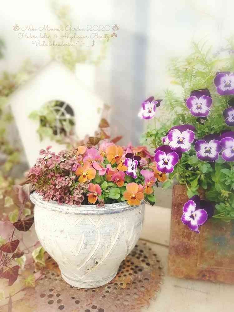 猫みんみさんのビオラ,エンジェル クローバー,寄せ植えの投稿画像
