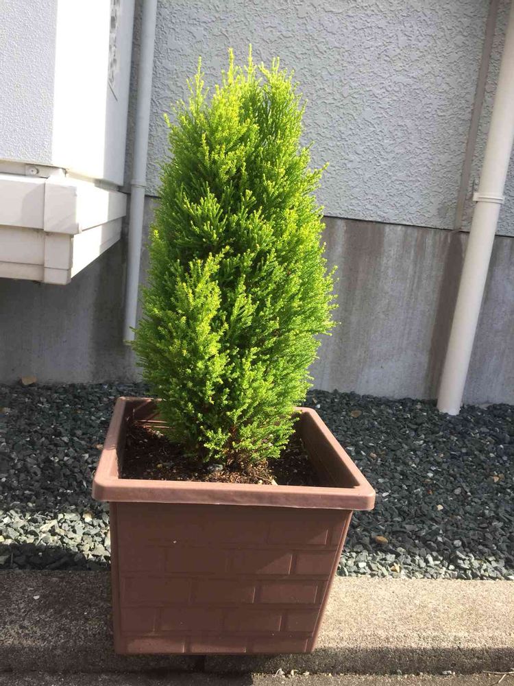 寄せ植えの一つにあったゴールドクレストを鉢に一つだけにしようと植え替えたもの。夏を越せたら、花壇にアメリカンブルーとかシルバーフォールと寄せ植えしたいな。