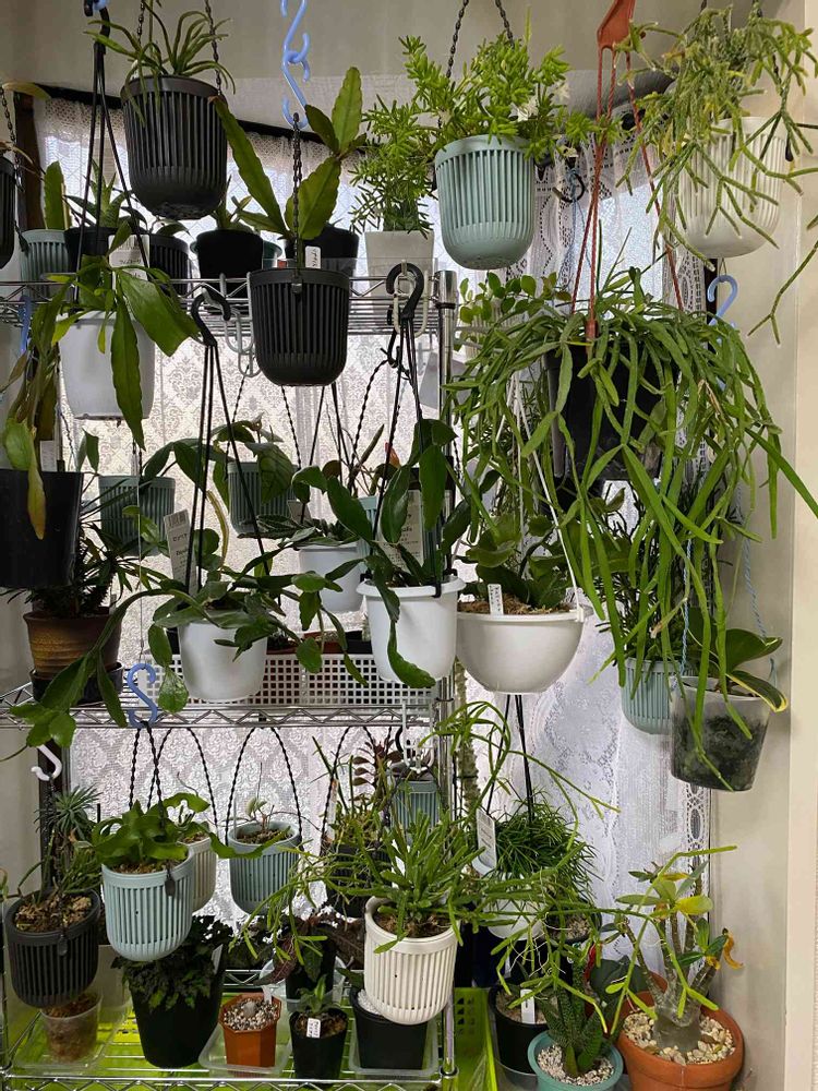 出窓がリプサリスやパキポディウム、ユーホォルビアでいっぱい。