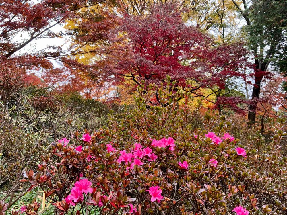 ツツジと紅葉が🍁一緒に咲いてるとは