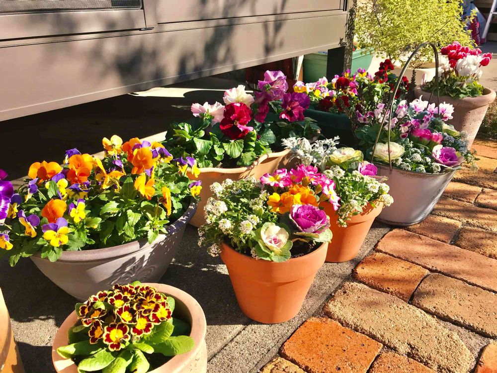 さん。明るくて元気カラーの寄せ植えがたくさんで素敵✨春を感じさせますね🎵