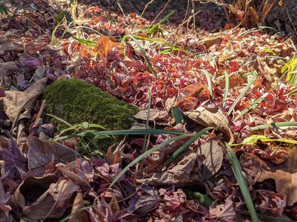 苔むした石と秋の名残…。苔が大好きな方の投稿もありましたね…感心します!私は未だ何苔なのかまでは…。😅