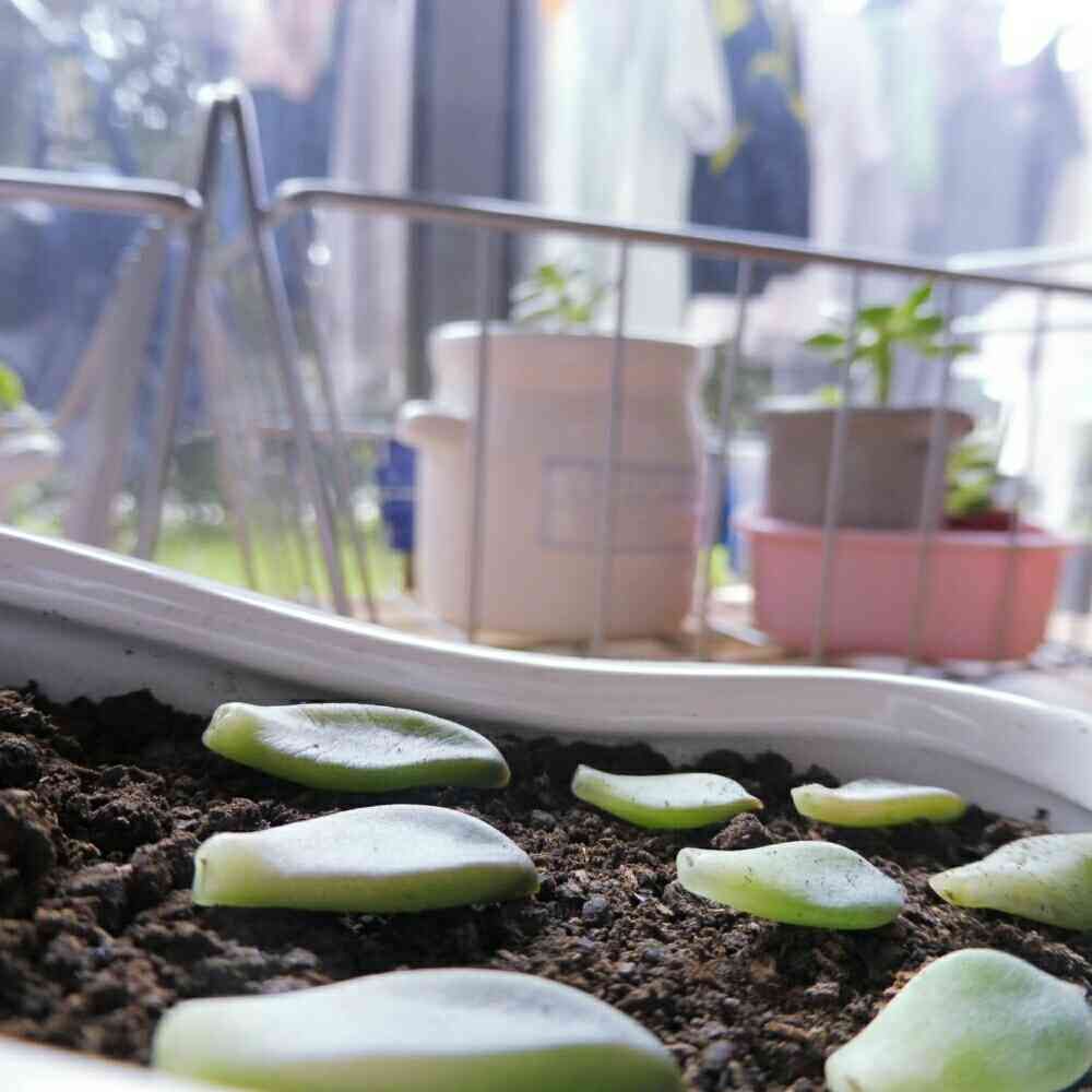 葉挿し(私の場合)は、発芽or発根するまでは、多肉用の乾いた土の上に転がしておいて、雨がかからない明るい日陰で風通しの良いところに放置。風通しが良い所の方が発芽or発根が早かったのでそうしてます😊あとは🌱みどりのまとめ🌱に書いるから、良かったら見てみてね🎵