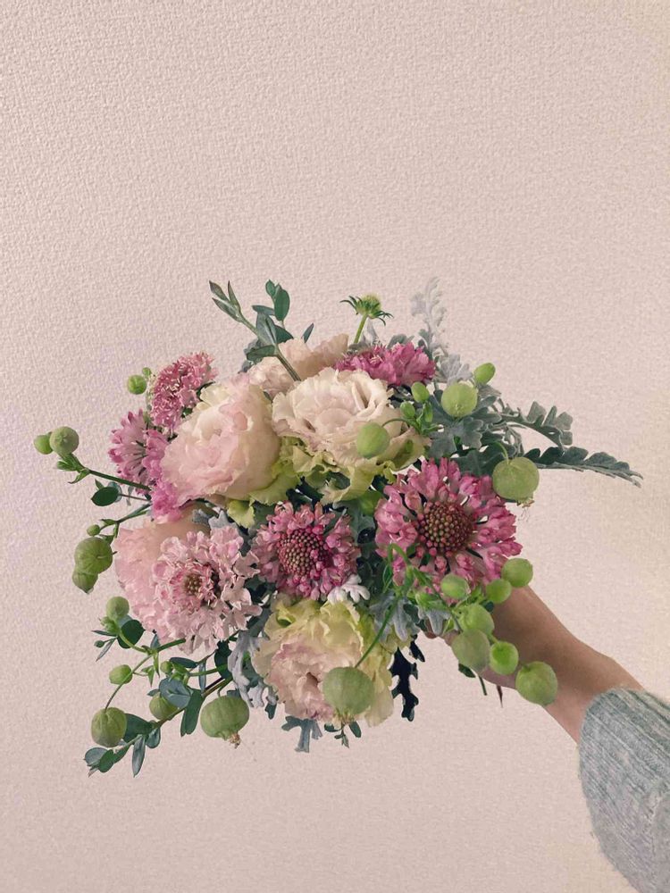 スカビオサとグリーンベルに一目惚れでした💕