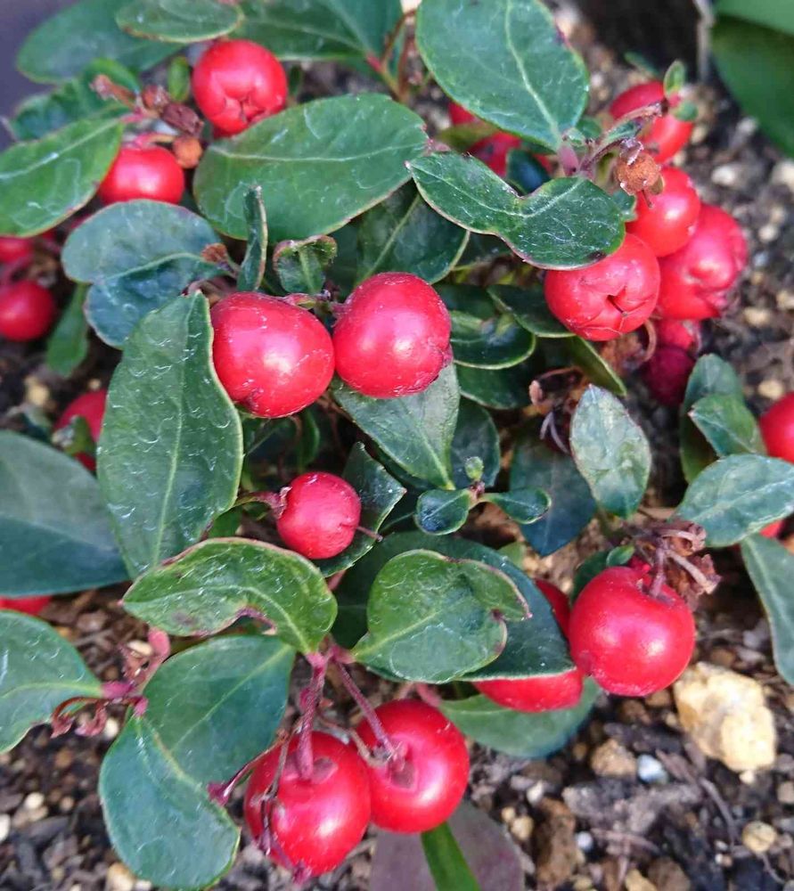 チェッカーベリーの赤い実、かわいいですね。我が家のチェッカーベリーは今年、花を咲かせられなかったので、実もなっていません。昨年のお迎えした時には、実がなっていたものを購入してんですけれどね。何が悪かったかなと考えてます。いま、実はありませんが、なぜか紅葉してます🍁