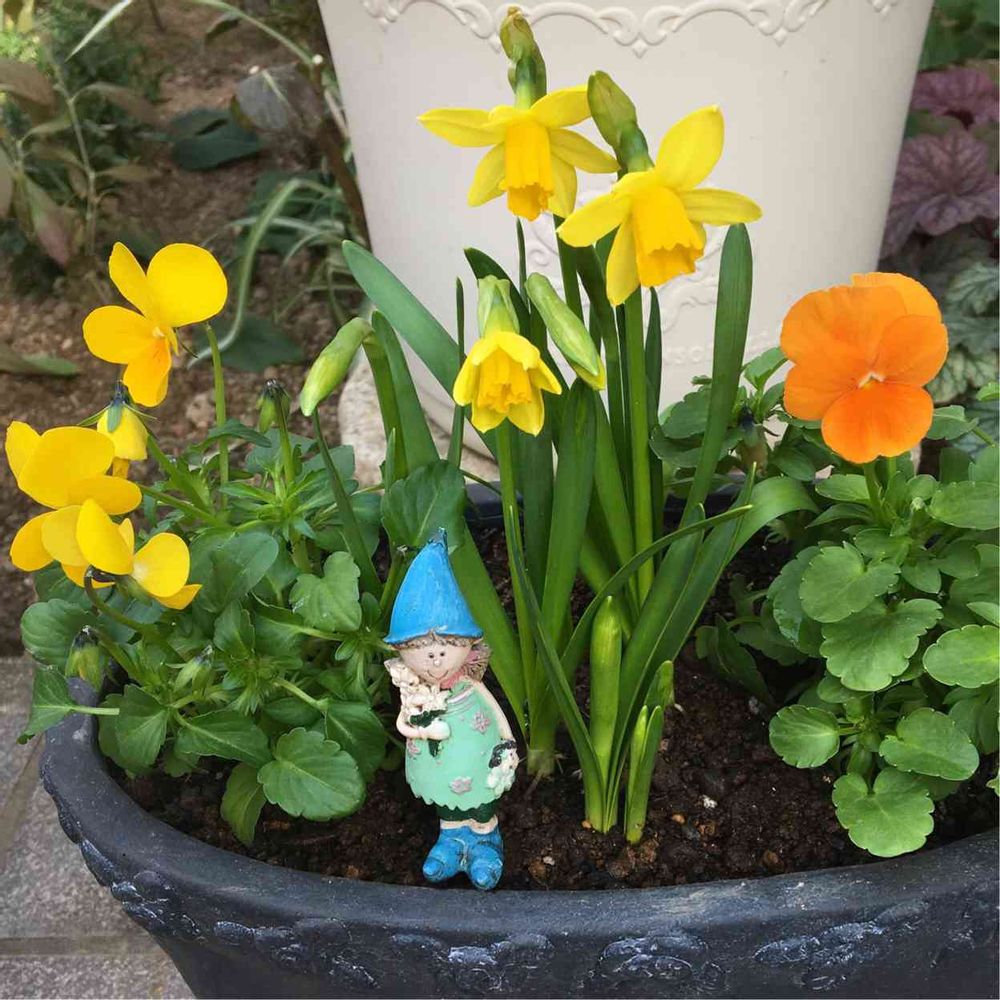 黄色の水仙とビオラさんが、黒い鉢にバッチリあっていて、ほんとに素敵ですね〜😍