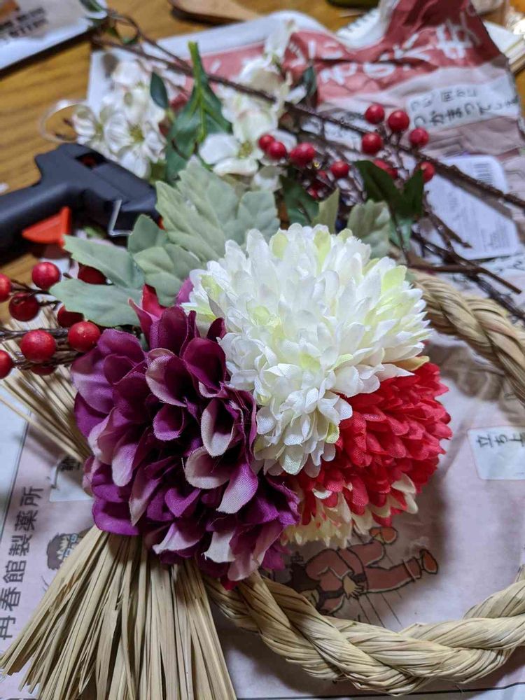 毎年多肉植物で作ってますが 今年は造花で挑戦しました