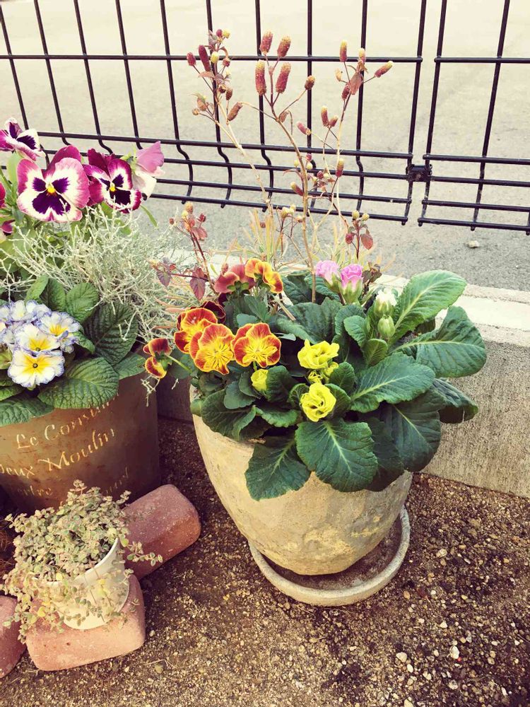 とビオラを元からあった寄せ植えにプラスし、ちょっと渋めに寄せてみました♥️