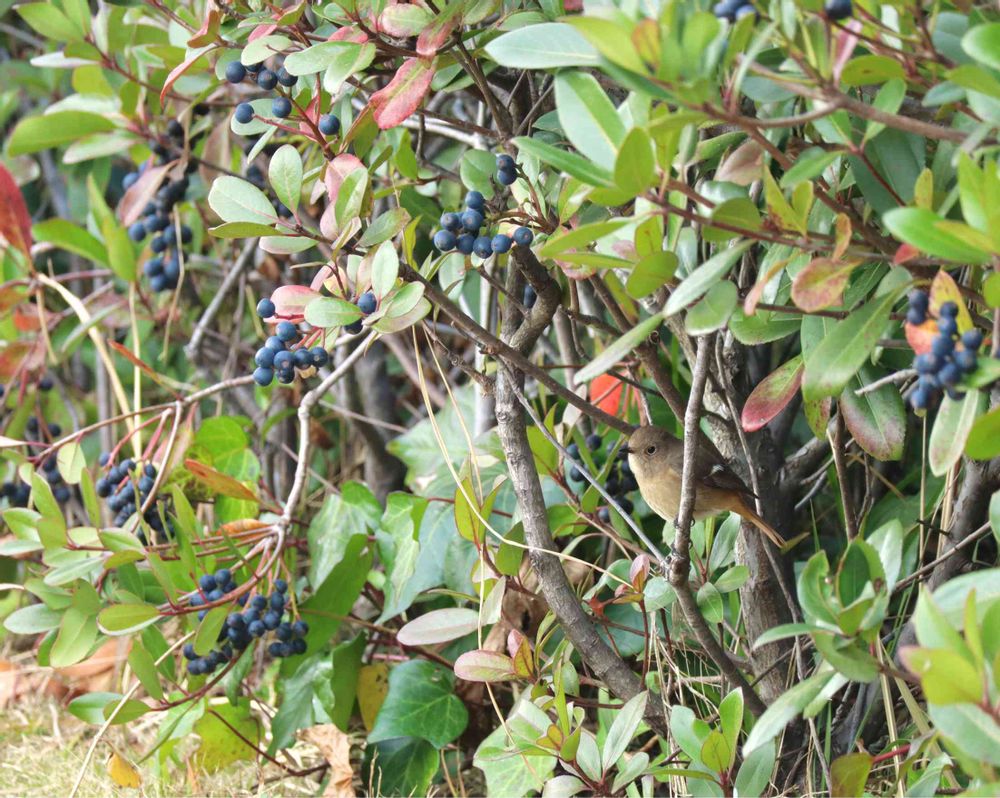 メジロやヒヨドリもシャリンバイの実を食べるので、きっとジョウビタキちゃんも食べてると思います〜🫐