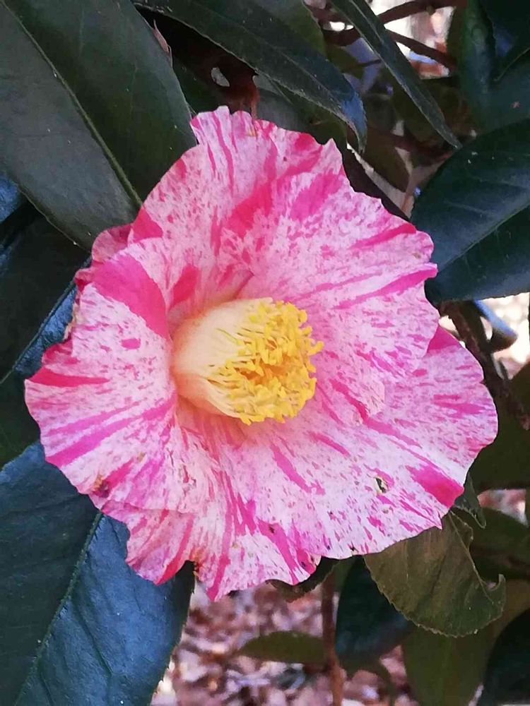 こんな、絞り模様の椿にも出会いたいものです。🤔