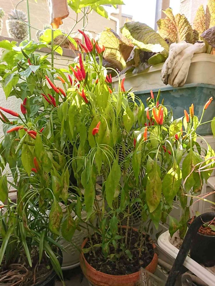たった1つの唐辛子。紙コップ栽培からここまで大きくなりました。もうすぐ収穫です♪