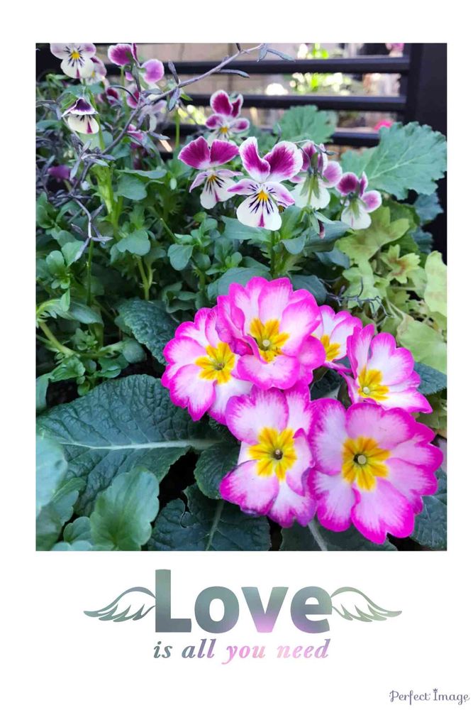 華やかな彩りで咲き誇るジュリアン、そしてラビットビオラの寄せ植えの世界素敵です☺