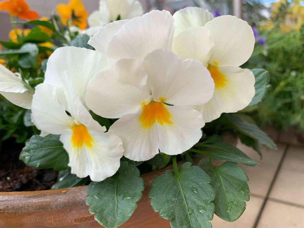 白の中にホンワカ黄色が入ってて可愛いビオラですね😍白いお花の可愛さに目覚めちゃいますね〜。