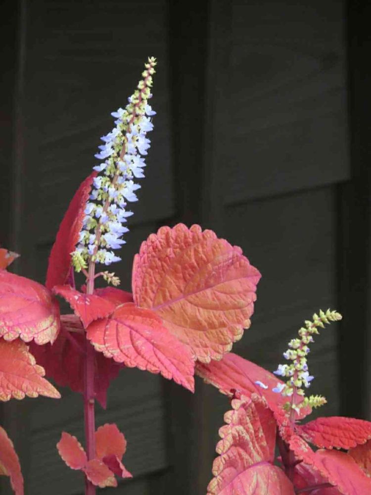 散策路沿いの庭先、コリウスとそのお花が素敵でした。