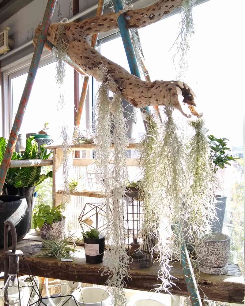 今晩は。やはりチランジアだと観葉植物になるのかな? 何かいい感じでした。💕よく調べると白くなったらいけないそうで青青してるのがいいそうです。う~ん。🤔 わかんないなー。笑