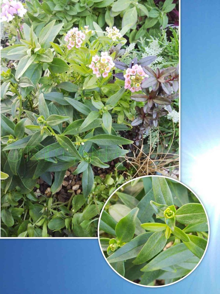 ほんとに立つんですねぇ。今はキンギョソウ切り戻してしまっているので今いち華がないのですが、ちょうど背の高いお花の胴の部分、葉っぱばかりになりがちなところの隙間から花を覗かしてくれて、何とも言えないイイ雰囲気を作ってくれます。うまく管理すれば風通しよくなって蒸れにくかったりもするんじゃないかと期待しています。スイートアリッサムの真ん中植え、なかなか面白いですよ。