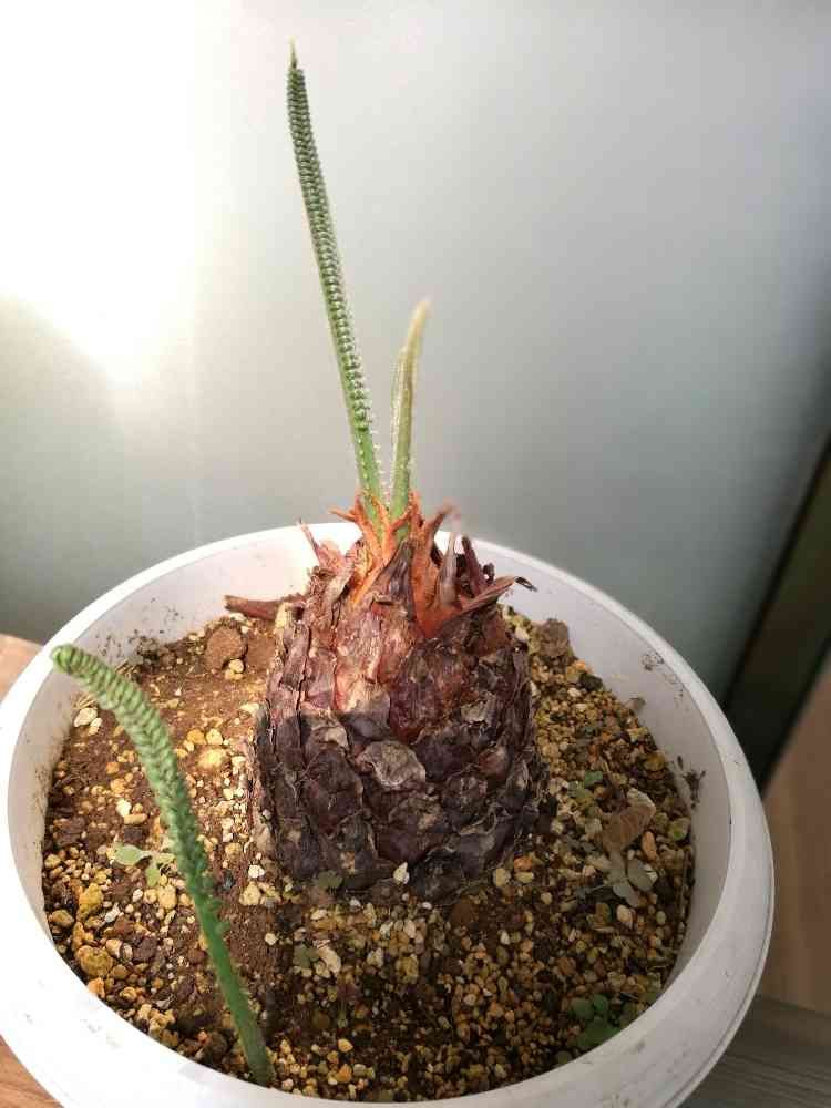 黄色く枯れかけた葉だけがついて、根もほとんど腐ってるように見えるこのソテツを譲り受け、