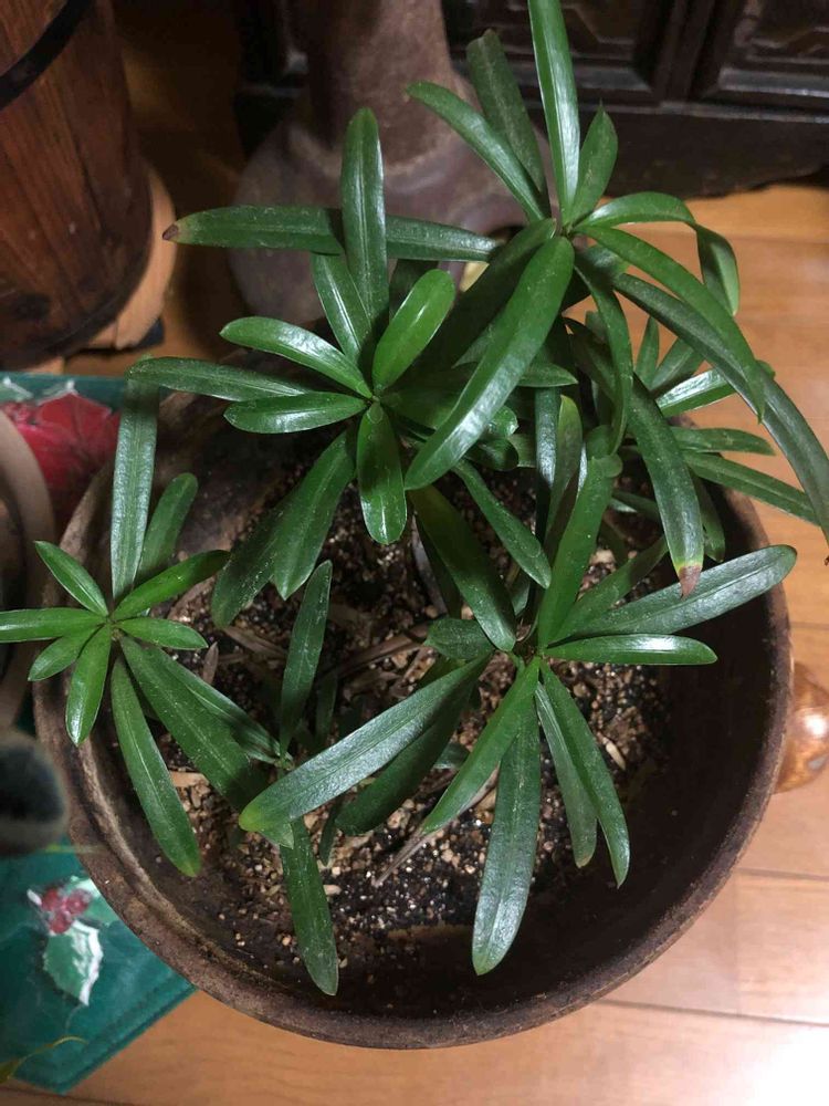 そうなんですね!!ラカンマキって垣根とかにも植えられていますね。樹木ですよね🌳その苗だったのかと…ダイソーで買ったので、緑の濃い葉が何気に気になり購入してみたものの…1年以上経ってますが、名前が分からず…