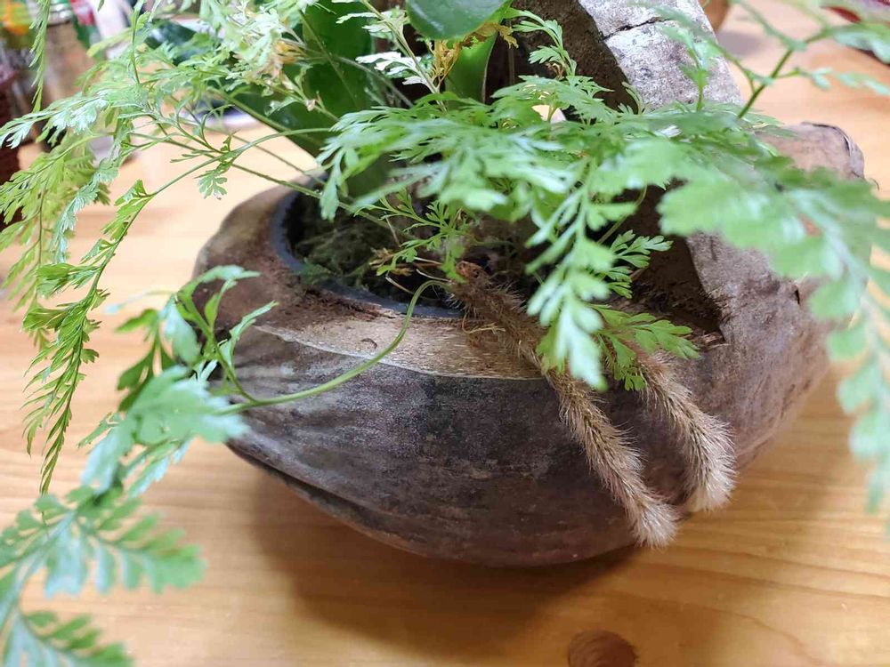 実家にプレゼントしたココナッツの鉢の寄せ植え