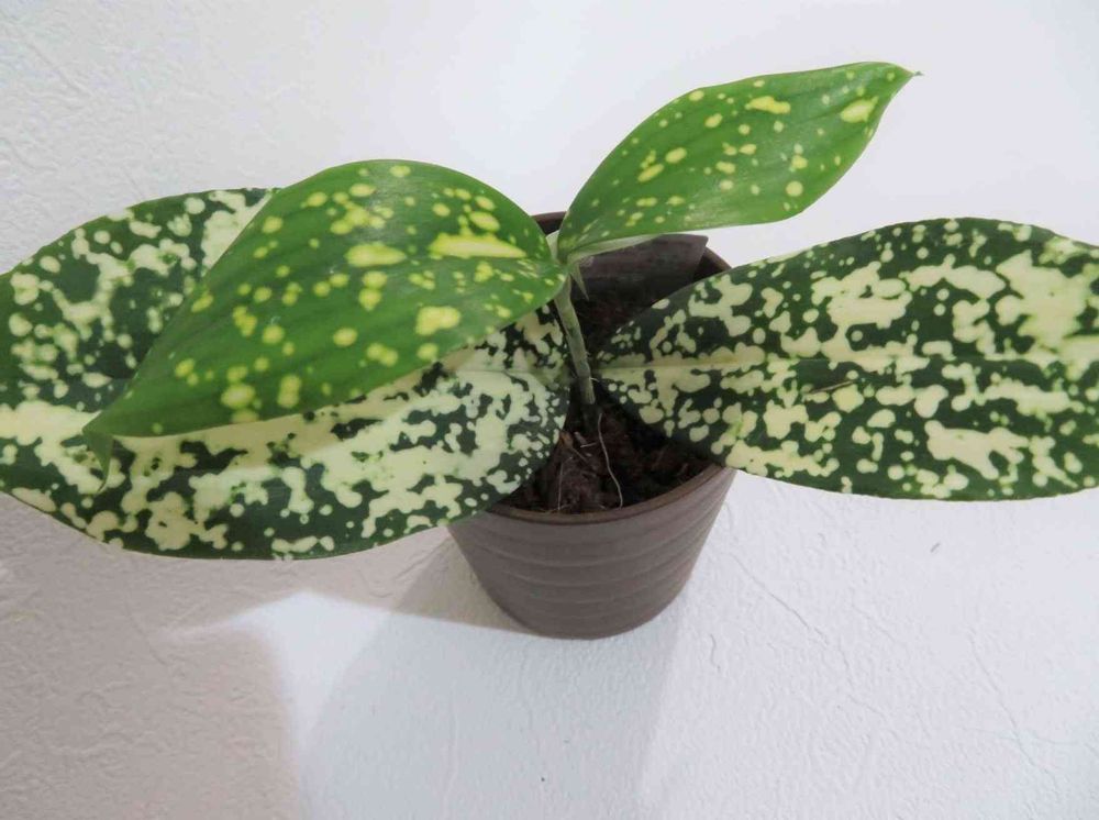 小さいほうの葉の、斑が「アオキバクロトン」っぽいなぁと思います。
