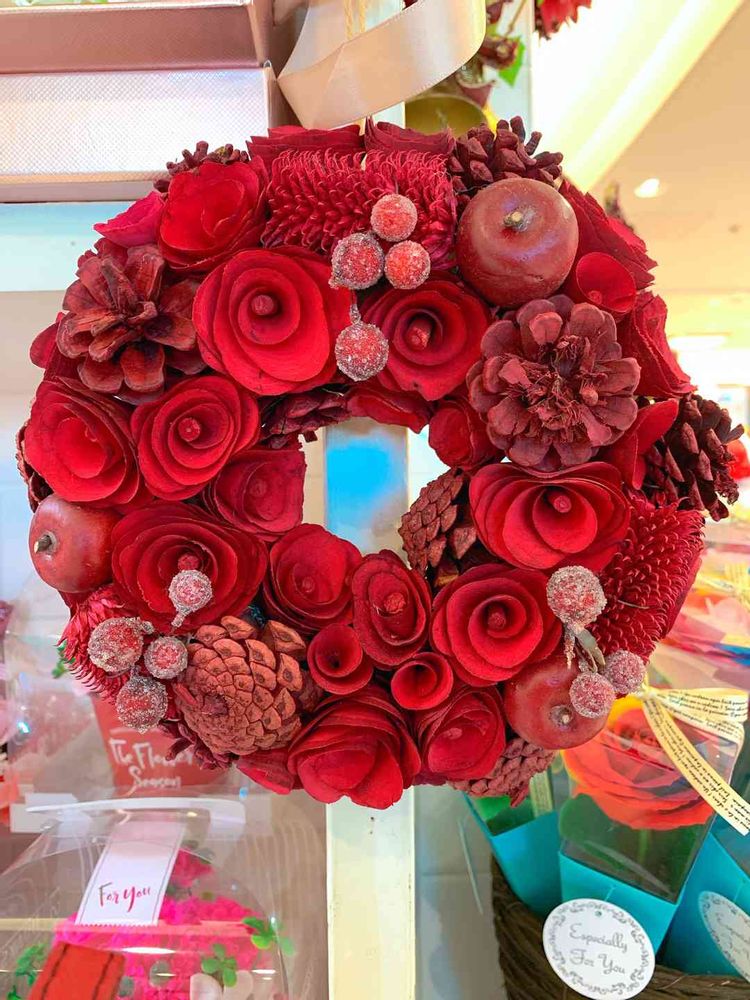 とっても綺麗な赤色一色のクリスマスリースでした♥️来年はマスク着用無しの世の中になって欲しいですよね😐