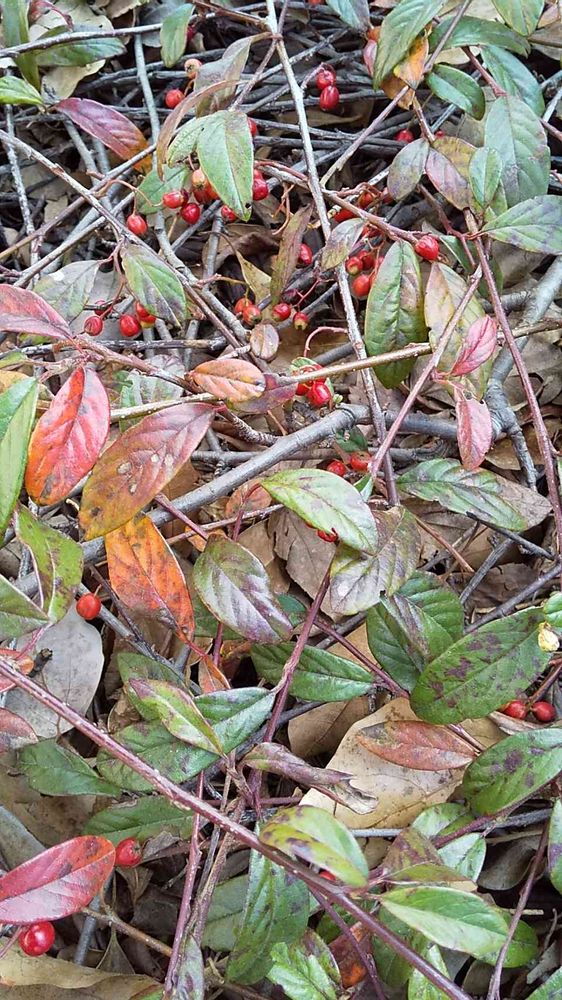 大きな木に赤い実がなっているのをあちこちで見てきましたが、地を這う枝や葉が地面を綺麗にカバーしているなと思って見ていたら、こんな所にも赤い実が隠れているなんてと嬉しくなりました。