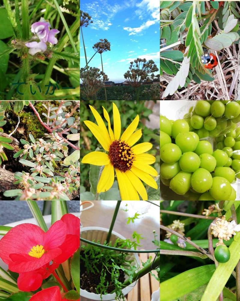 中段左から:小錦草→ミニ向日葵?→シャインマスカット