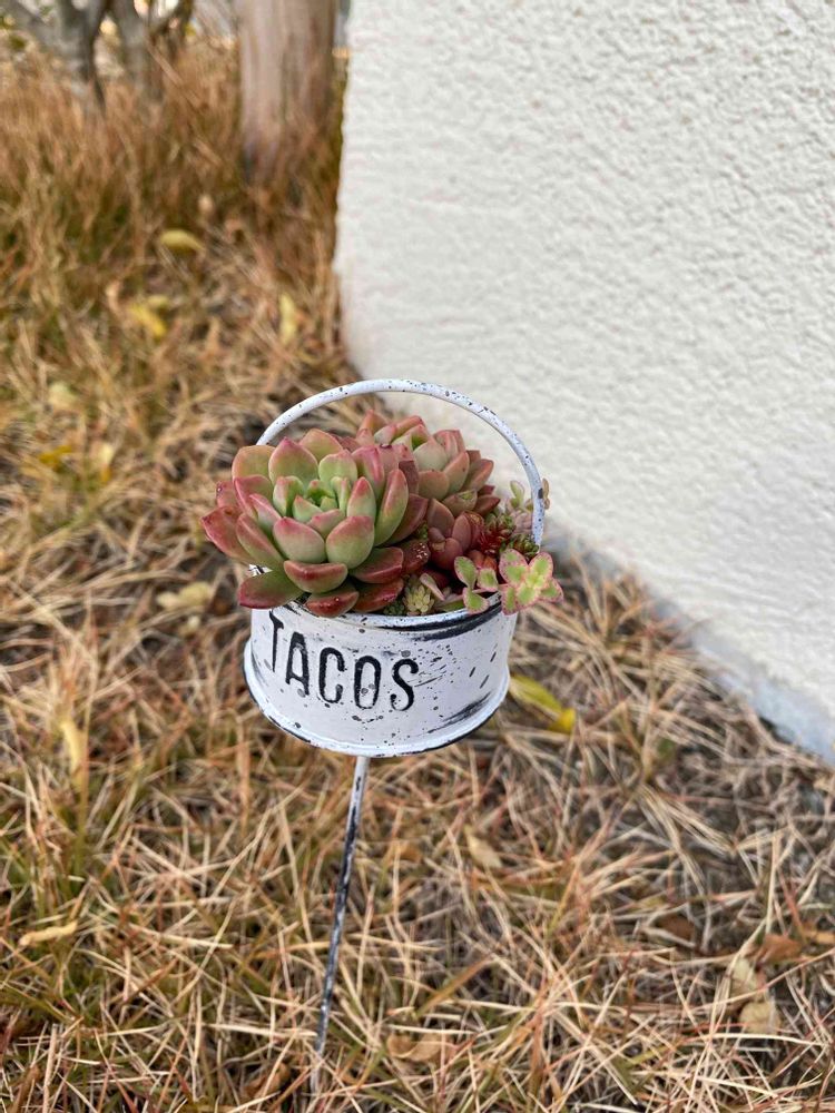 ですが、この缶穴があいておらず作った二日後に雨が降ってしまい🤣中で水が溜まって多肉ちゃんが溺れてしまったら大変と室内の多肉ちゃんのとこに慌てて避難させました🤣