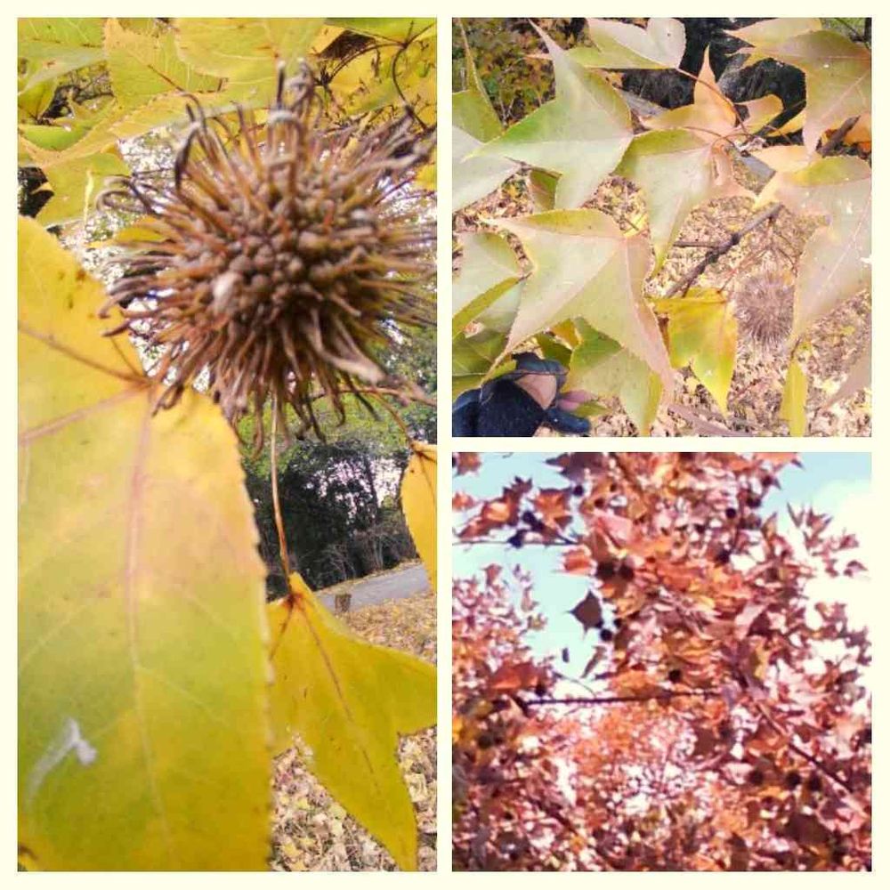 果実は集合果でクリのイガのようになります、葉は3裂し、3脈か目立ちます、古代日本には生えていたようですが今は自生は有りません。モミジバフウ(アメリカフウ)も有るけど、今回見つかりませんでした。