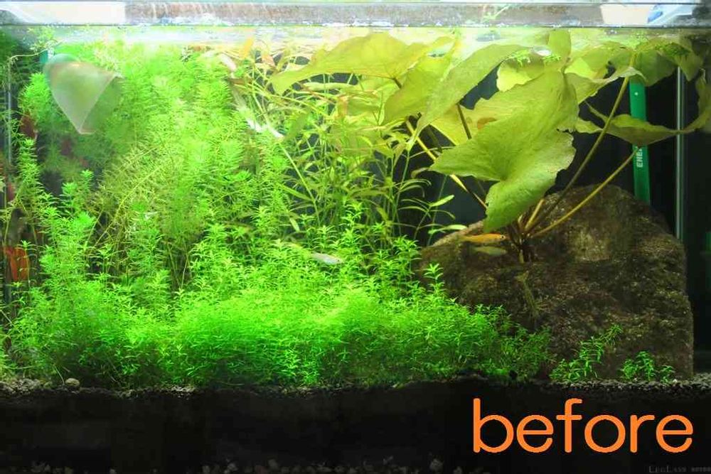 さん 後景に使ってる有茎の水草が水面から顔出して、水上で萎れて汚らしくなってたんですよ..... なので、バッサリ切っちゃいました。