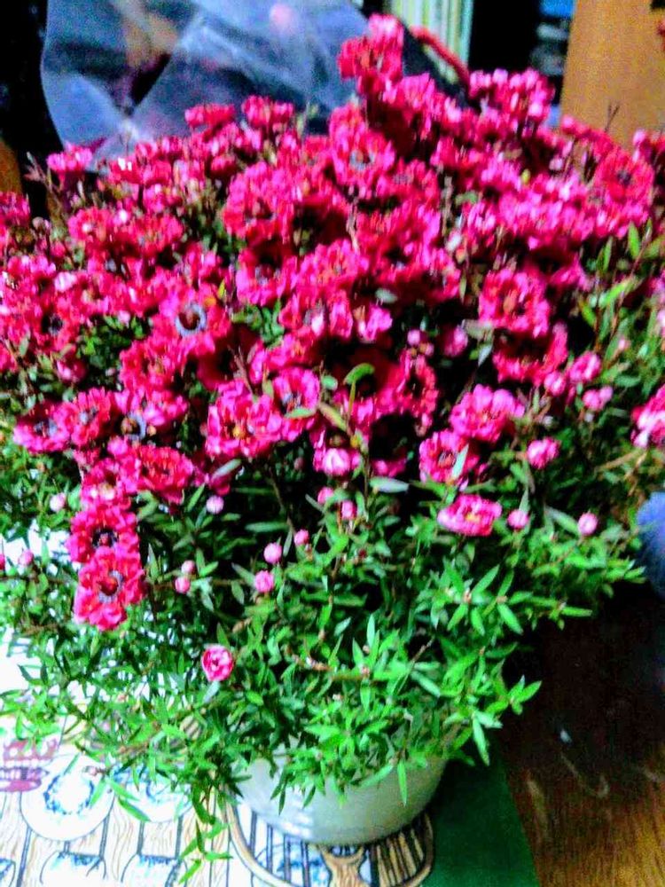 ギョリュウバイはオーストラリア原産で、あのユーカリの仲間の「フトモモ科」です、太腿??っ始め、ウケました😂これ、意外とクセがあって、栽培が難しいです💦水切れに弱いのに、すぐ根が張って根詰まりになりやすいので、地植えのほうがいいかもしれません。