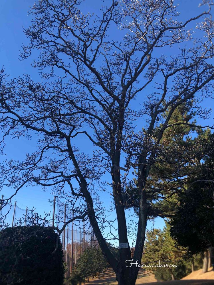 ゴルフ場の白木蓮蕾が沢山、少し咲いているのもあり、季節は真冬なのに、木々は既に春を待ち望んでいるよう🤗