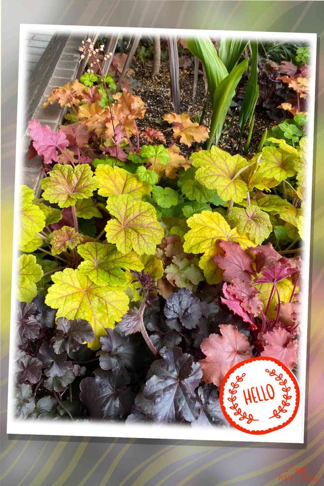 3月に横浜駅近くで撮して、アップしないでいたヒューケラ💚🧡