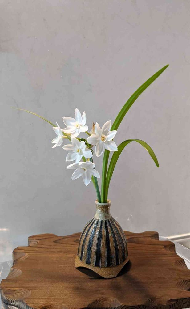 水盤のクレソンとのコラボも素晴らしかっだけど、こちらも、土物の花器にぴったり。