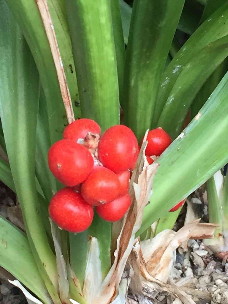 玄関先のオモトは赤い実を付けてしっかりお留守番をしてますよ🤗