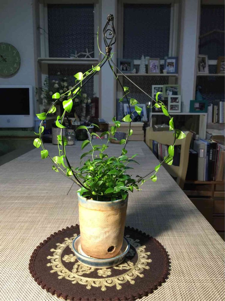 これはたまたま家にあったつや消しの黒いワイヤーを使ったんだけど、2本のワイヤーを上の方で合体させるためにぐるぐる巻きにしてるのは園芸用の柔らかいアルミ製ワイヤーを使ってます❇︎