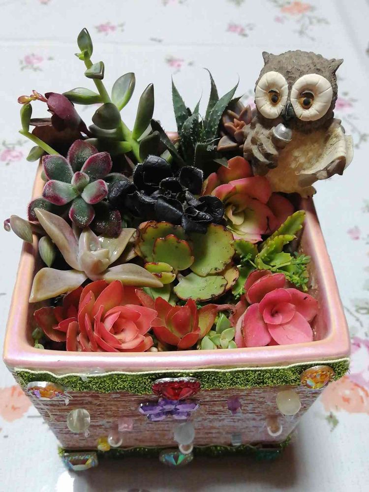 仕事場の友達が多肉植物の寄せ植えが欲しいと言うので下手だけど作ってあげました💖