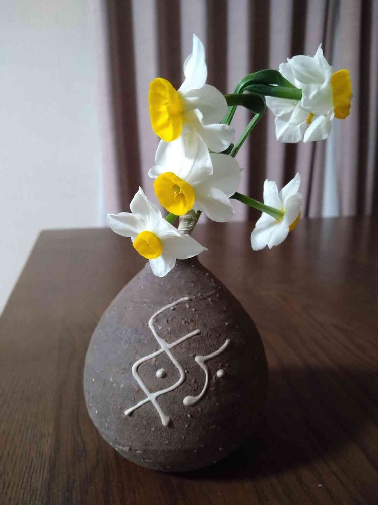 今朝、水仙の花がお辞儀していたのでお部屋に連れてきました😄