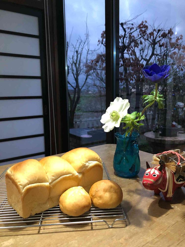 クリスマスの手作りケーキとお花のテーブルも素敵でしたが、新年に向けての干支の丑の置物とアネモネの色とても素敵ですね〜