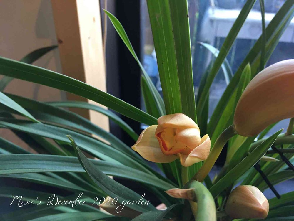 picは、10月中旬に出た花芽が、やっと開き出したシンビジウムさん🌸