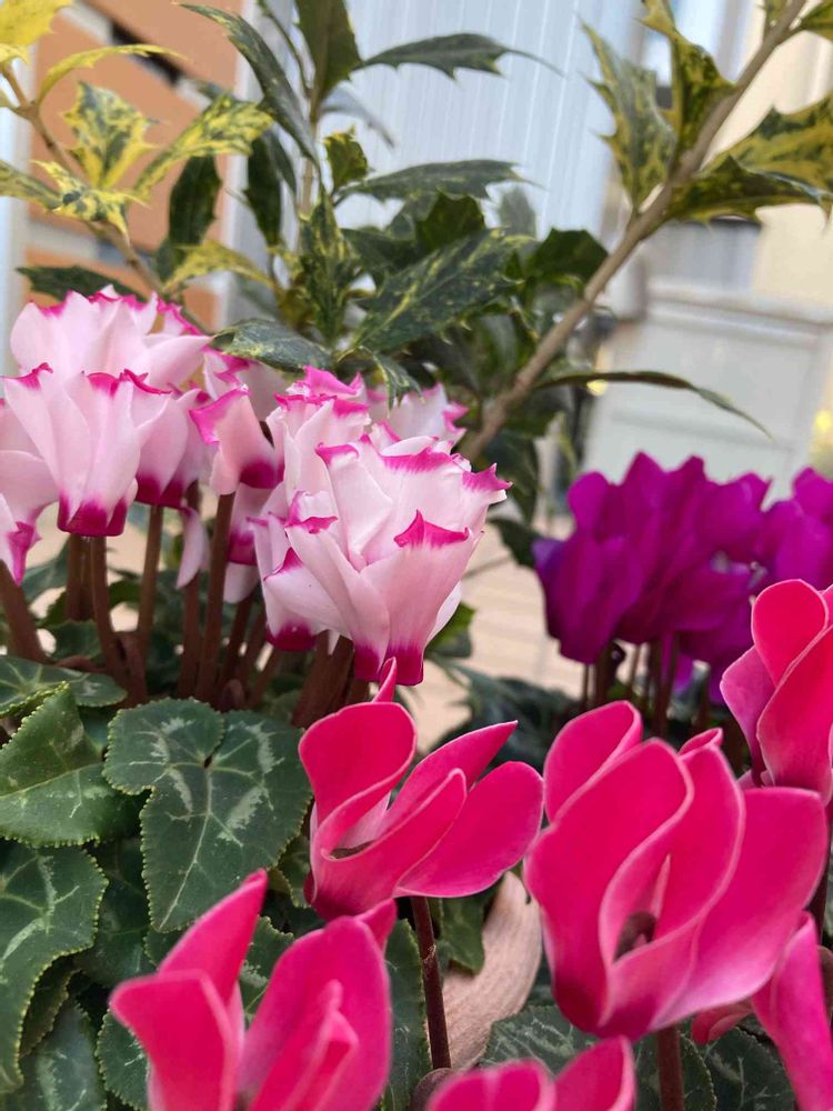 ゴシキヒイラギは昨年からの2年目、ガーデンシクラメンは今シーズンのもの。