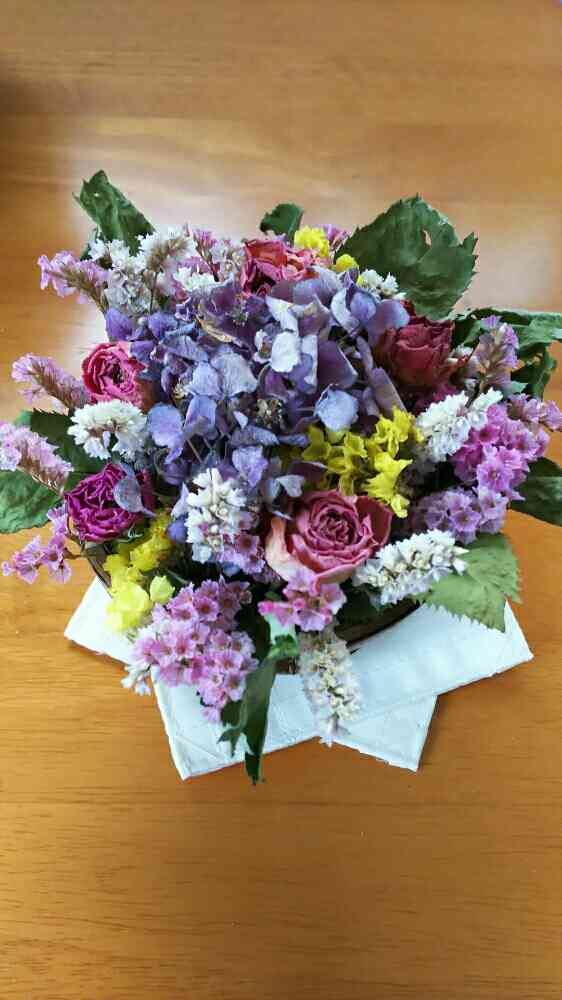 薔薇はお花屋さんで売れなかったのをドライにして1本50円で売ってるのを買いました。スターチスは友達からいただきました❗あとは自分でドライ志多ものです🎵