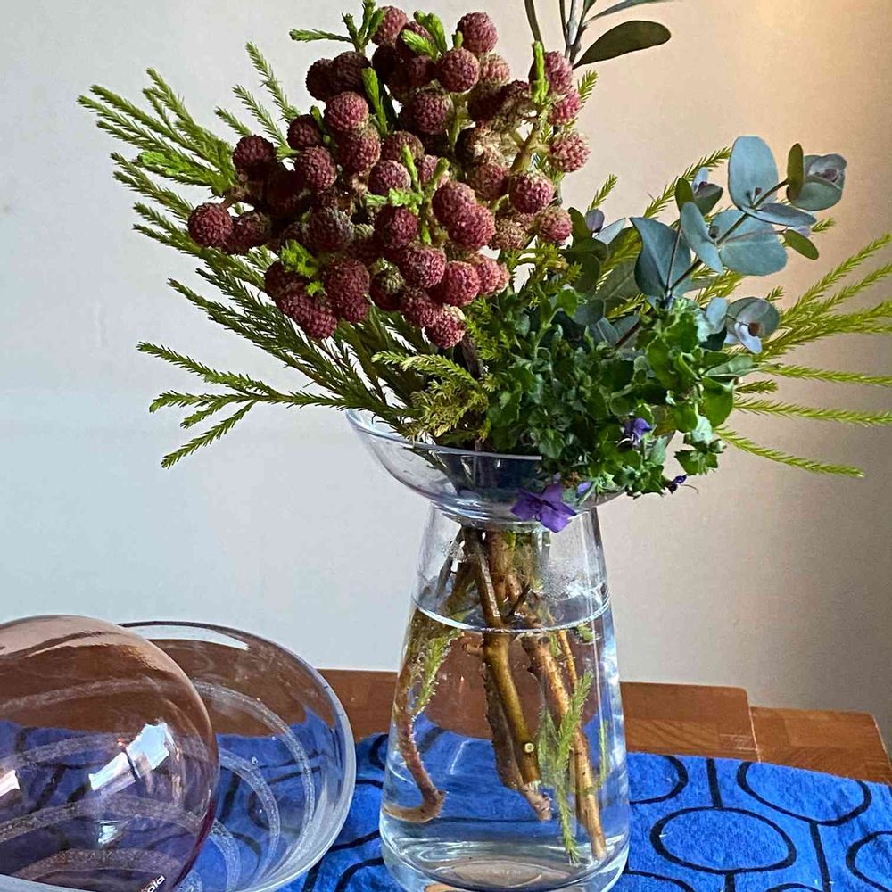 今朝のバーゼリア✨庭のユーカリ、バコパと合わせてみました。