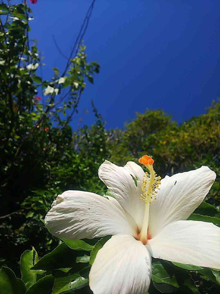 屋根から一輪だけハイビスカス🌺が見えたので休憩時に📸
