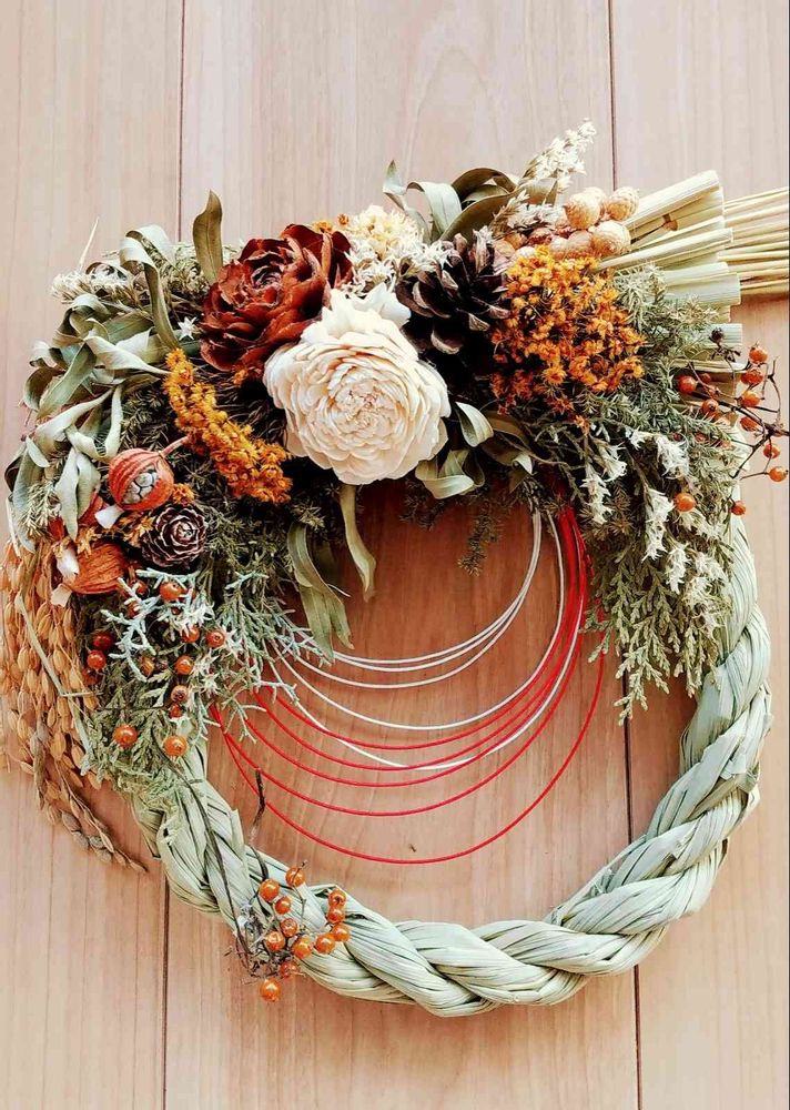 ワークショップで作ったお正月用リース。クリスマスリースから模様替え。