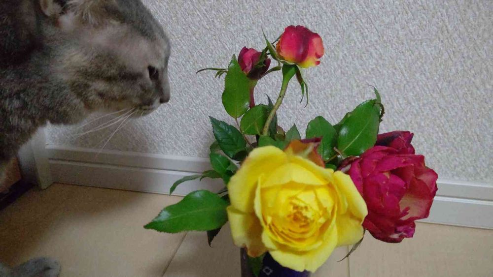 ネコパンチもバラのトゲには敵わないからね😢