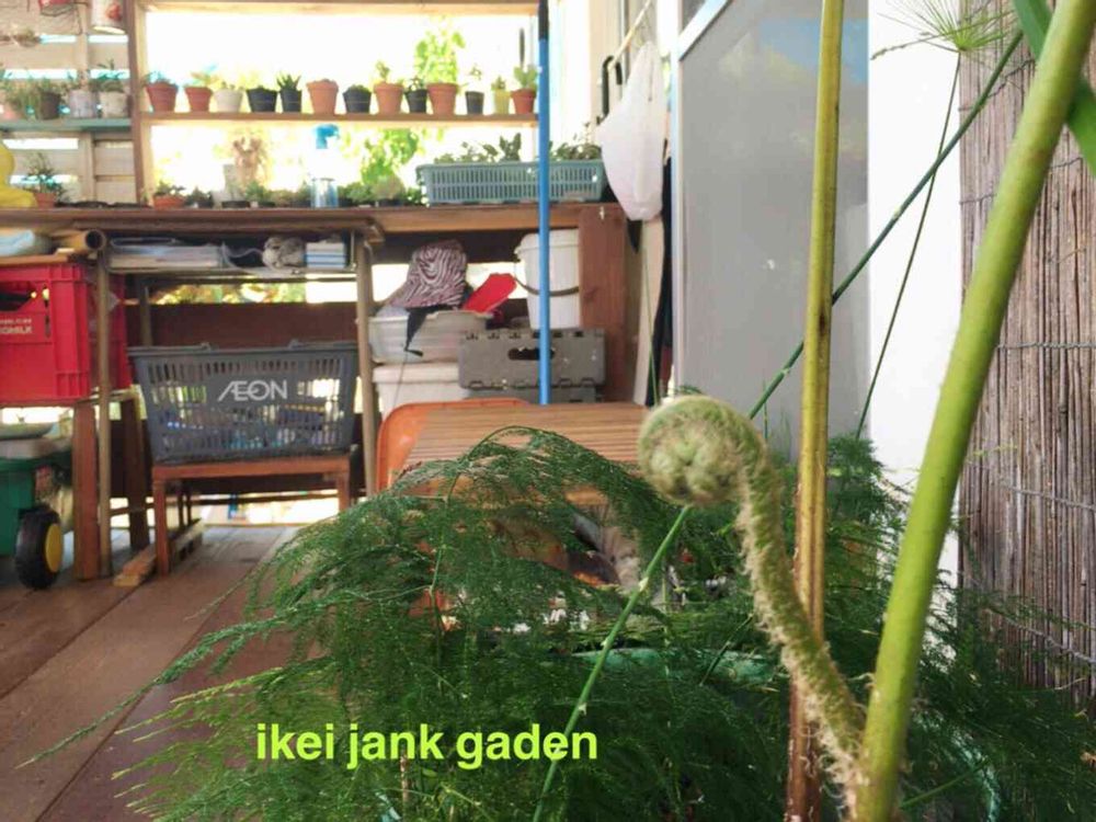 グッピービオトープの場所にある小さいほうのヘゴヤシから、新芽がにょきにょきとゼンマイみたいに出てきました✨